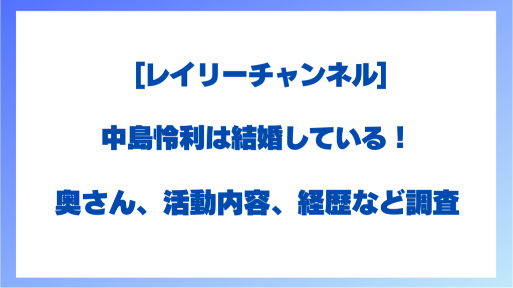 【レイリーチャンネル】中島怜利は結婚している!奥さん、新婚さん、身長、トリガー、箱根など解説