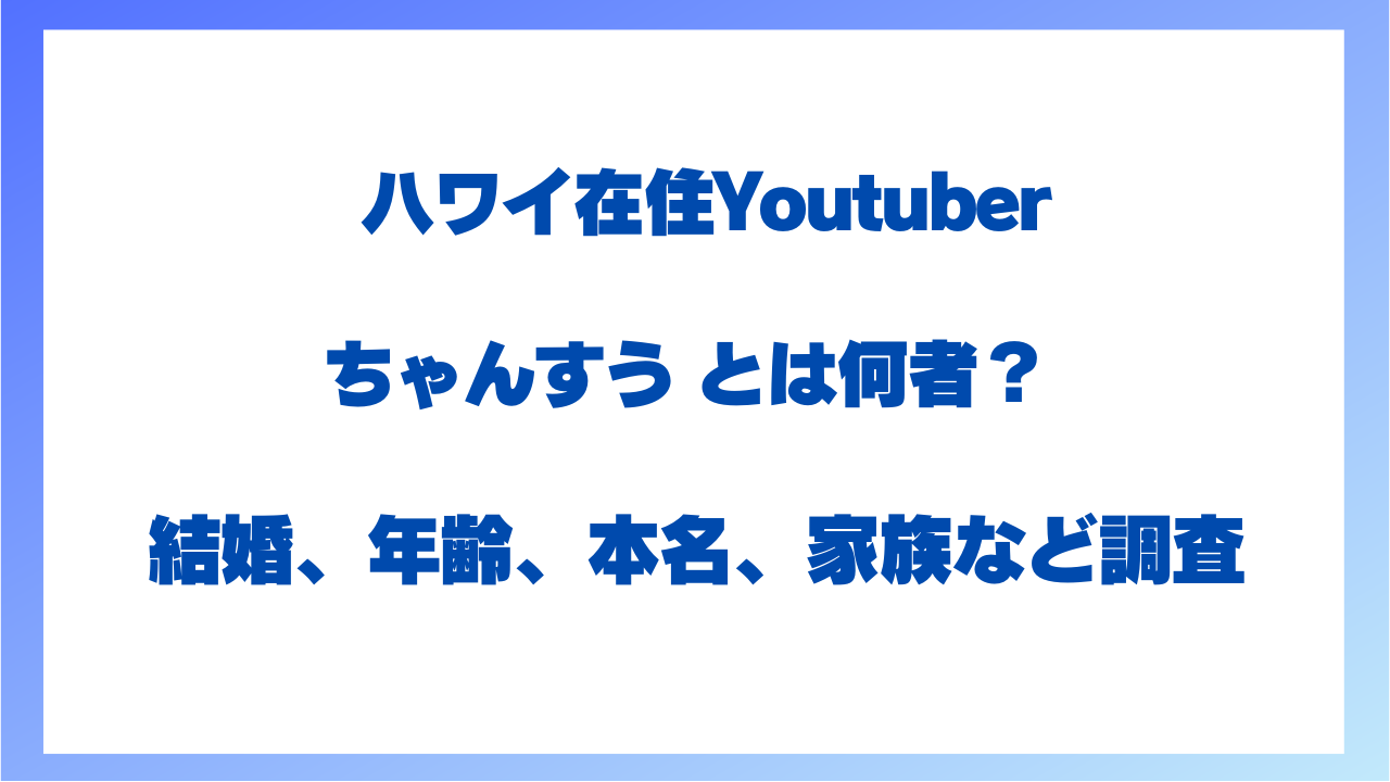 ちゃんすうさんは挫折からの復活、留学・大企業勤務・移住という波乱万丈の経歴を経て、現在はハワイで成功を収める人気YouTuberです。2025年には結婚し、公私ともに充実した人生を歩んでいます。